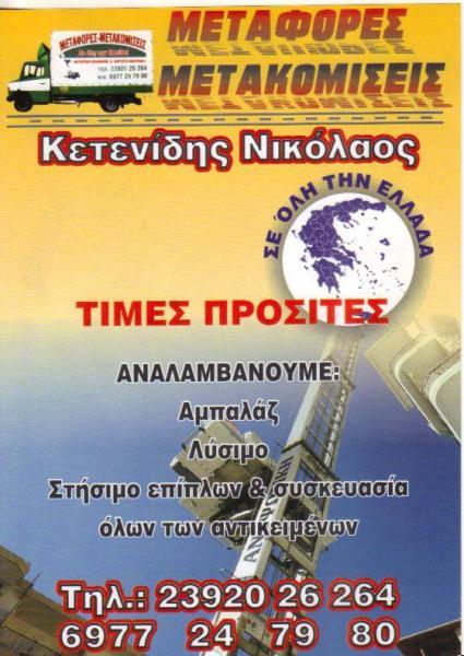 ΜΕΤΑΦΟΡΕΣ ΜΕΤΑΚΟΜΙΣΕΙΣ ΠΕΡΑΙΑ ΘΕΣΣΑΛΟΝΙΚΗΣ ΚΕΤΕΝΙΔΗΣ ΝΙΚΟΛΑΟΣ