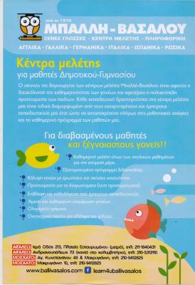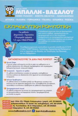 ✓ Τα Κέντρα Ξένων Γλωσσών Μπαλλή-Βασάλου διαθέτουν τμήματα Ξένων Γλωσσών, Μελέτης, Ρομποτικής & Πληροφορικής.