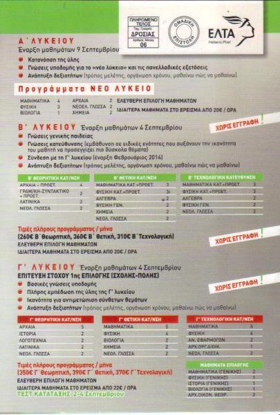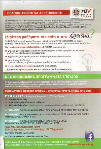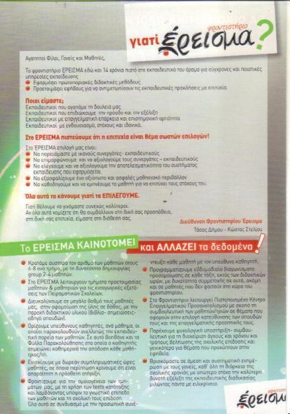 ΕΡΕΙΣΜΑ ΦΡΟΝΤΙΣΤΗΡΙΟ ΜΕΣΗΣ ΕΚΠΑΙΔΕΥΣΗΣ ΔΡΟΣΙΑ